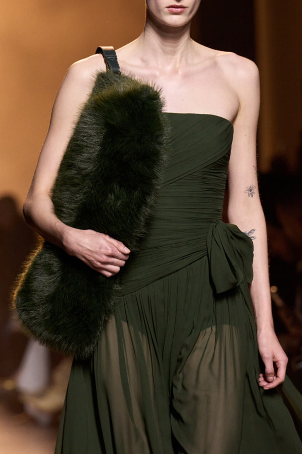 كان لحقائب اليد حصّة كبيرة أيضاً، فدار Louis Vuitton مثلاً قدّمت حقيبة يد من قماش الجلد وبلون الكاكي الرائج. أضافت إلى اللوك نكهة أنيقة وراقية للغاية.