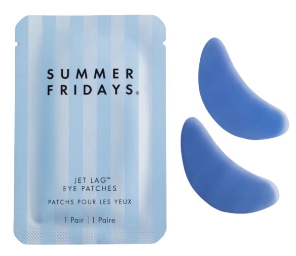 Jet Lag Eye Patches من Summer Fridays مصنوعة من هيدروجيل غير قابل للانزلاق، وتحتوي على كافيين وببتيدات، بالإضافة إلى مزيج مرطب من الغليسيرين وهيالورونيك أسيد. تهدف لترطيب وتهدئة منطقة العين المتعبة، وتقليل التورّم، وهي مثالية بعد السفر أو عند الاستيقاظ المتعب.