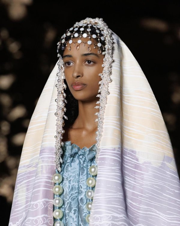أما القطعة الثانية، "أم السمكة"، والتي تم تنفيذها بالتعاون مع الفنانة السعودية سارة العبدلي، فتجسّد روح "يَمَال". فهي تعيد ابتكار الهوية البصرية للتراث الساحلي السعودي، محوّلة حياة البحر إلى حركةٍ وشعور. تتدفّق على القماش أمواجٌ ورسوماتٌ يدوية لغواصين وقوارب، بينما تلمع اللآلئ الطبيعية وقطرات الكريستال كأشعة الشمس تحت الماء. ويتدلّى من التصميم شراشيب تتزيّن بحافةٍ من اللؤلؤ، تكريمٌ رمزي لحبل الغواص الذي كان يربط الإنسان بسطح البحر. بعد أن كانت "أم السمكة" زينةً لنساء المنطقة الشرقية في أهم مناسباتهن، ها هي اليوم تزيّن واحدة من أبرز اللحظات في تاريخ الموضة السعودية، رمزٌ لتراثٍ يعود إلى الواجهة بفخرٍ وغاية.