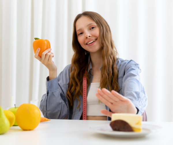 أهمّ ما عليك القيام لتخسري الوزن، هو أن تبدئي باتّباع نظام غذائيّ صحيّ، والذي يُفَضَّل أن يكون تحت إشراف اختصاصيّ تغذية. من خلاله، يجب أن تتوقّفي عن استهلاك الأطعة المشبّعة بالدهون وأيضًا تلك التي تحتوي السكّر المصنَّع، وأن تستبدليها بأخرى صحيّة. ومن أفضل الخيارات لك، الخضار الورقيّة لأنّها غنيّة بالفيتامينات، وكذلك بالألياف التي تعزّز وظائف الجهاز الهضميّ، إضافة إلى الأطعمة الغنيّة بالبروتين، لأنّها تُشعرك بالشبع وتقلّل من رغبتك بتناول الطعام بين الوجبات.